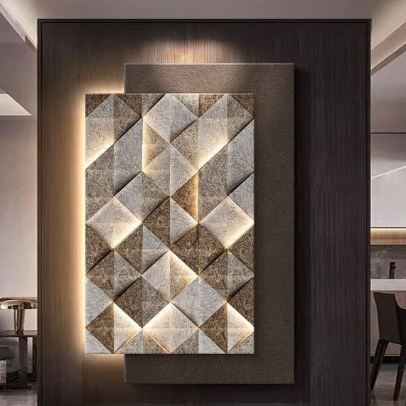 Transform your space with this innovative 3D geometric sandstone spray painting. Featuring simple modern abstract design on premium density board, this frameless artwork adds dimensional depth to living room sofas and entryways. The textured sandstone finish creates striking visual impact, combining contemporary geometry with tactile luxury for sophisticated spaces seeking innovative wall décor solutions.