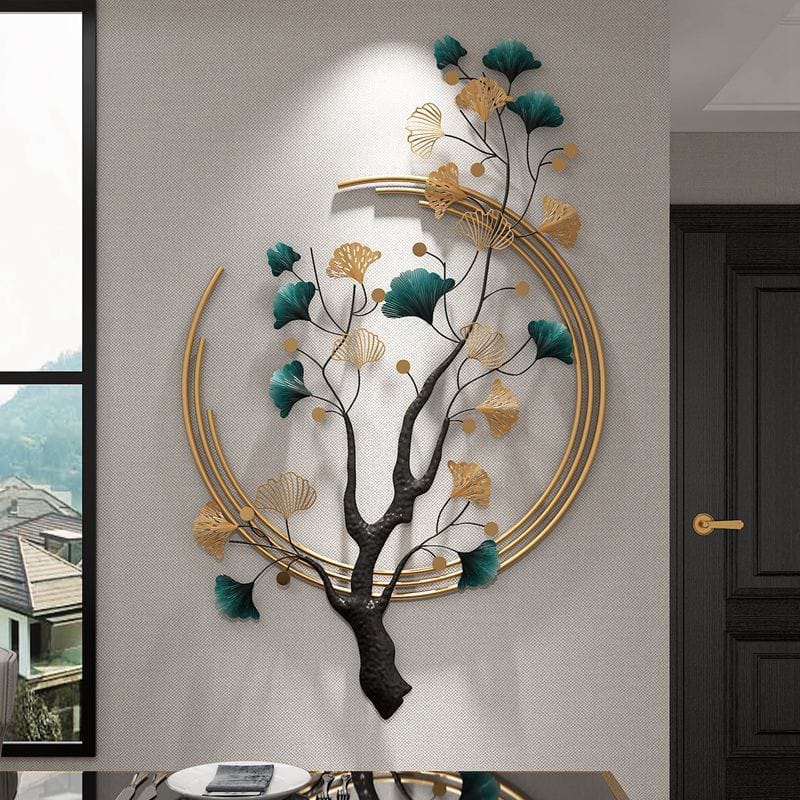 Modern 3D wall sculpture featuring elegant vertical ginkgo leaf design in light luxury wrought iron. Spray-painted finish creates striking geometric patterns perfect for contemporary interiors. Ideal for living rooms, bedrooms, and dining areas, this statement piece adds sophisticated artistic dimension and natural-inspired elegance year-round.