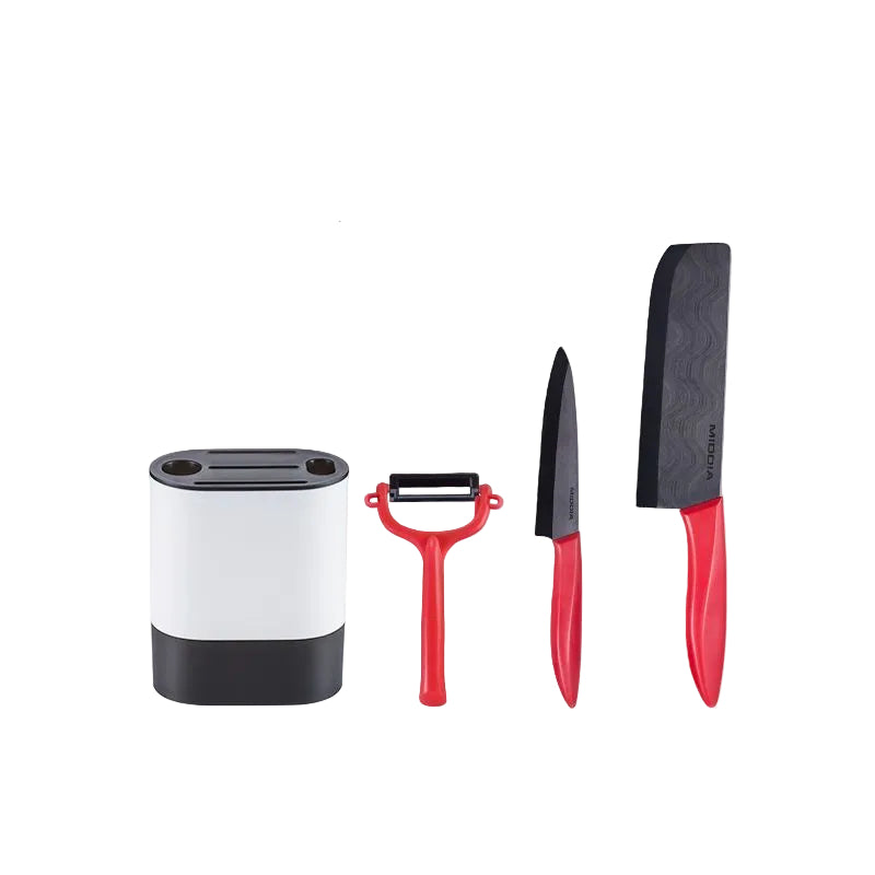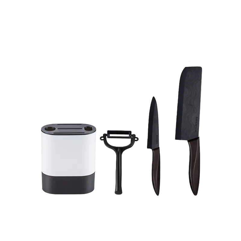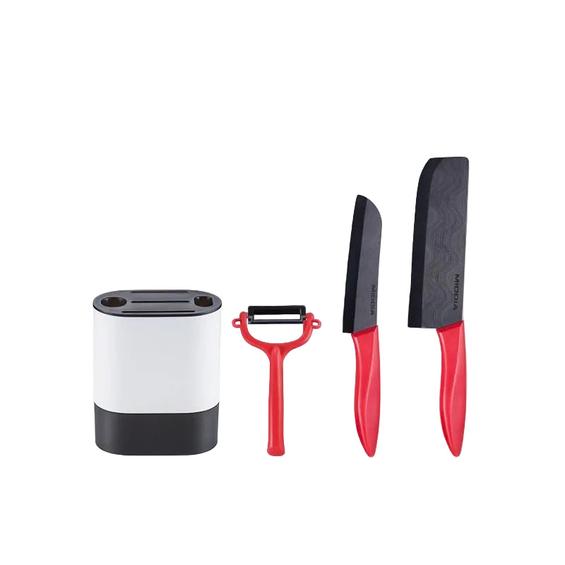 This versatile ceramic knife set features sharp durable blades perfect for kitchen and baby food preparation. The set includes multiple knife sizes with ergonomic handles for comfortable grip and precise cutting. Ceramic material ensures food stays fresh without oxidation and is easy to clean.