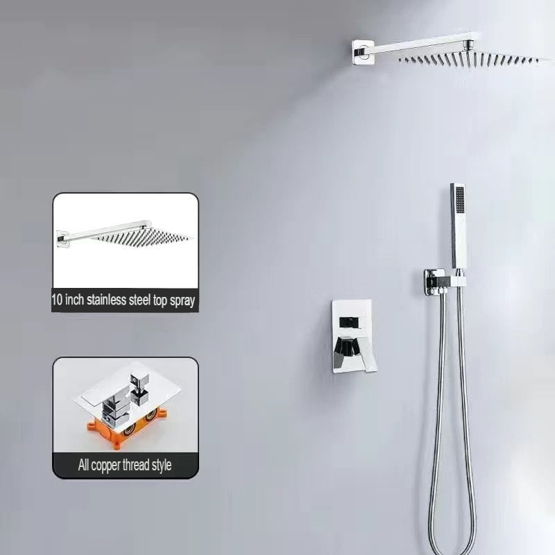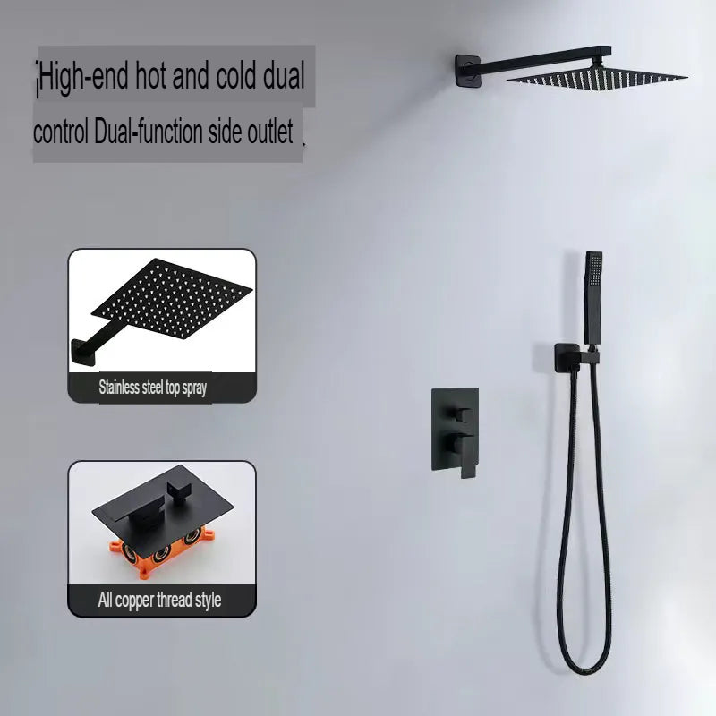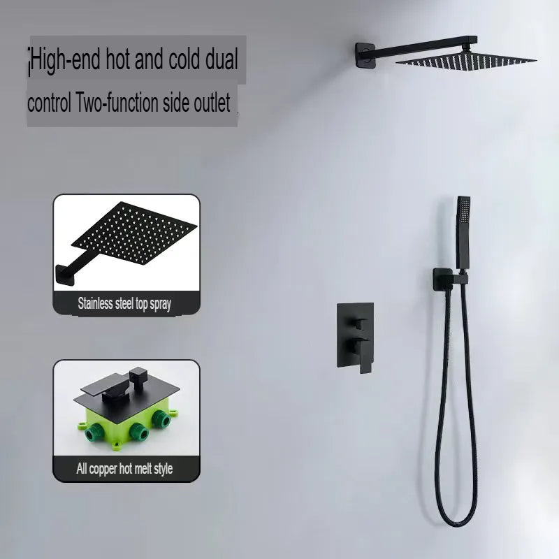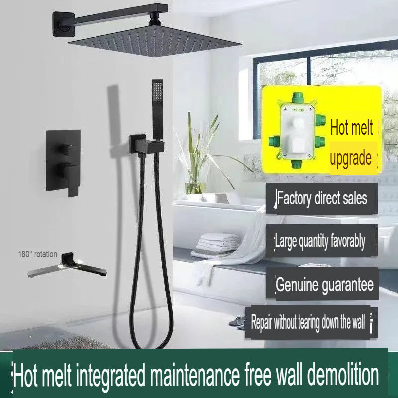 This innovative concealed shower head features hot melt dual-use technology for seamless wall integration. Pre-embedded design with rotatable, filtering, and pressurizing features delivers luxurious bathing comfort. Chrome plating construction with single handle dual control offers elegant modern styling for contemporary bathrooms.