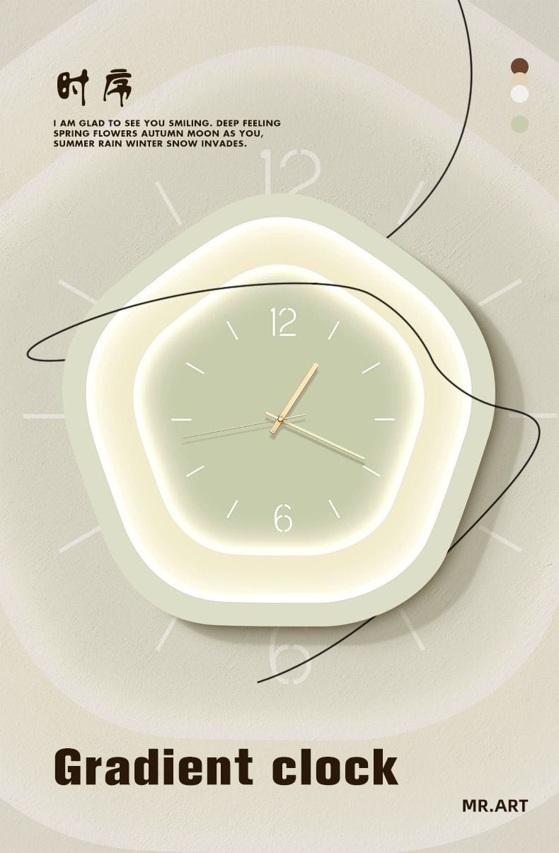 Elevate your living room with our cream-colored decorative wall clock—a modern minimalist masterpiece combining artistic design with functionality. Ultra-quiet silent timekeeping ensures peaceful ambiance in any space. Featuring crystal porcelain material, irregular shape, and spray-painted finish, this creative timepiece seamlessly merges wall art and clock for contemporary interior elegance.