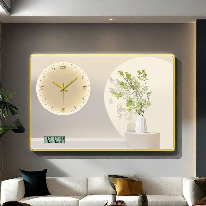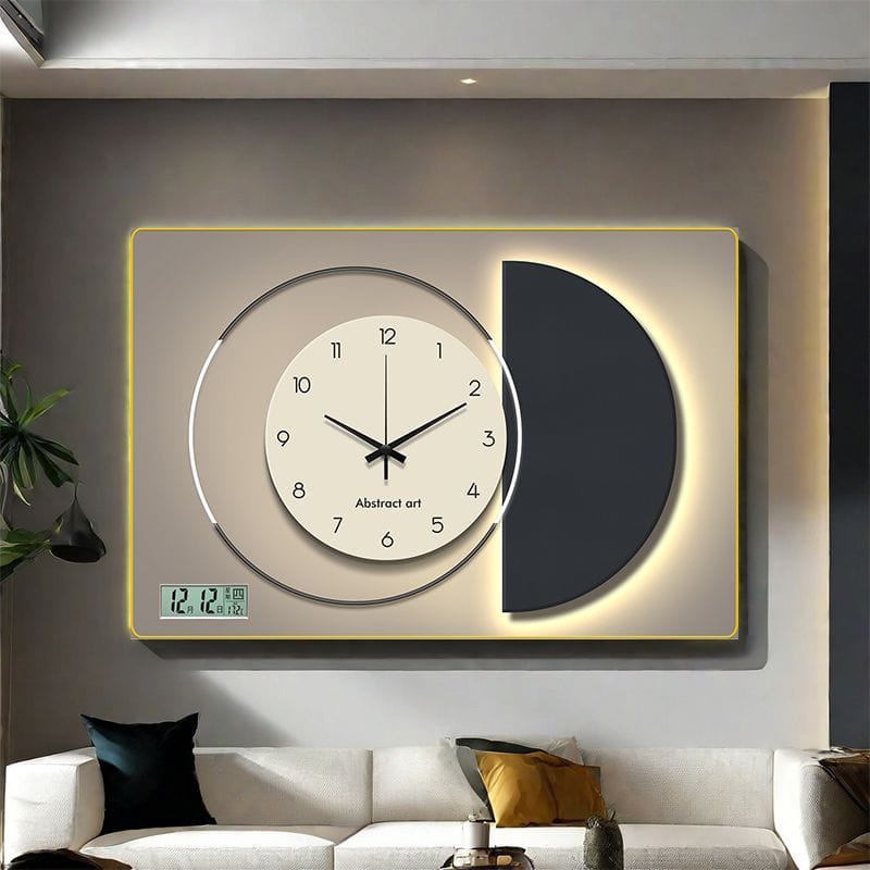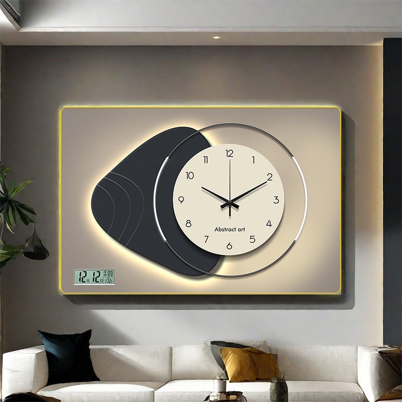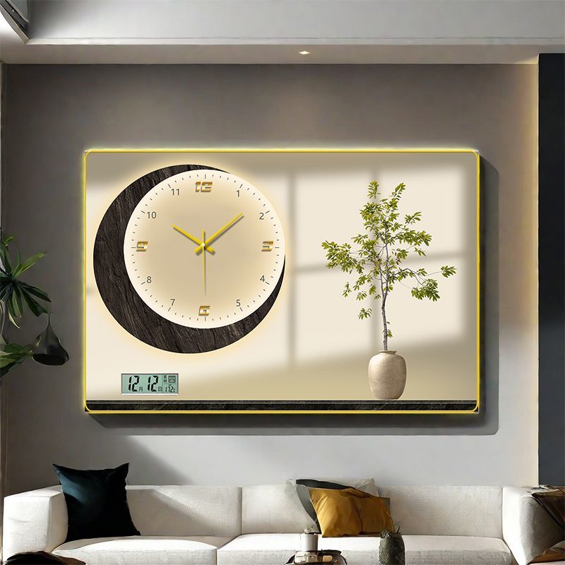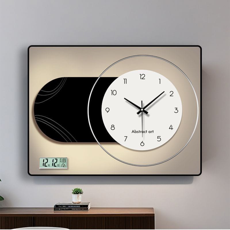 No-drill creative wall clock featuring 2025 modern style with natural scenery design and perpetual calendar. Silent sweeping second movement with sleek rectangular shape perfect for living rooms and studies. Battery-powered quartz mechanism with spray-painted fiberboard construction. Contemporary home décor that requires zero installation hassle.