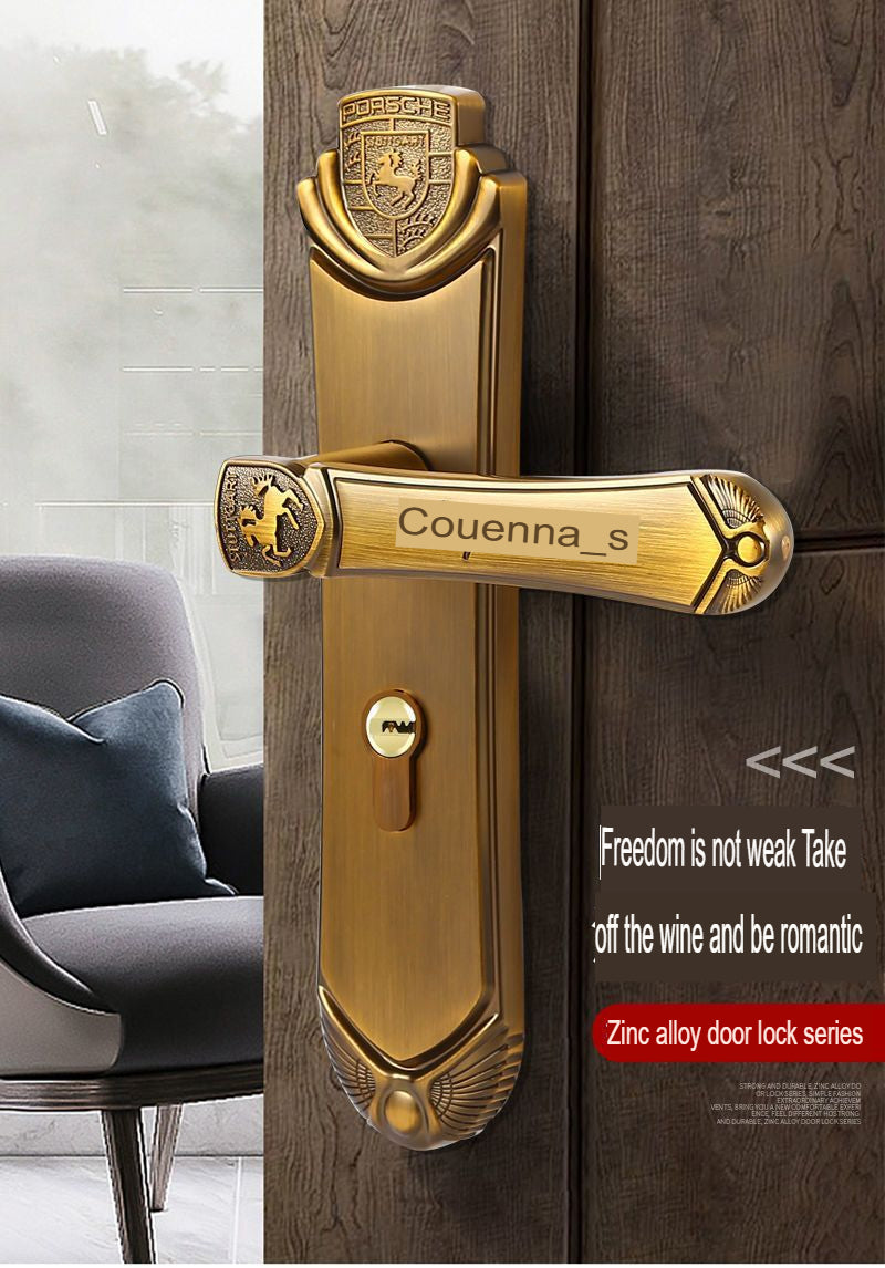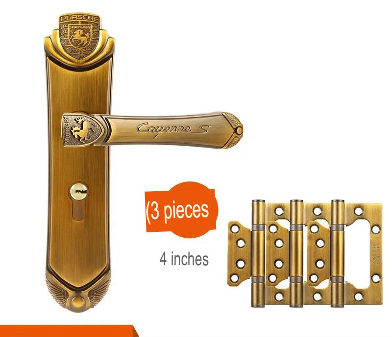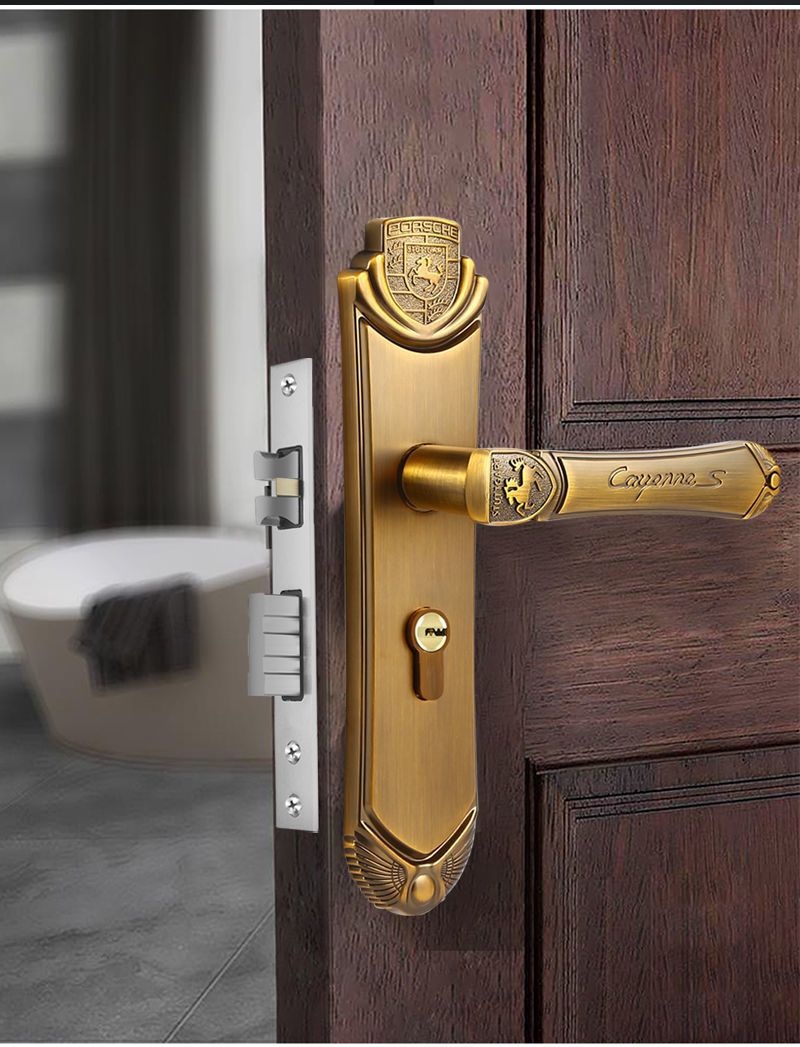 This modern door lock features elegant yellow bronze handles with durable zinc alloy construction. The copper cylinder and oblique tongue mechanism provide reliable security and smooth operation. Perfect for home use, it includes keys and delivers contemporary style with excellent durability.