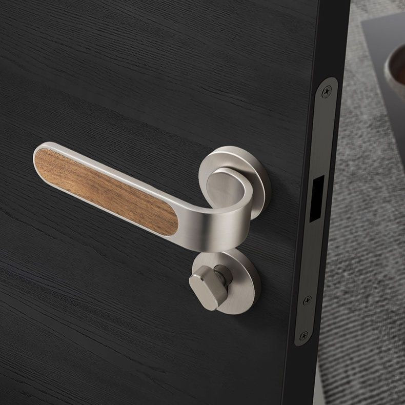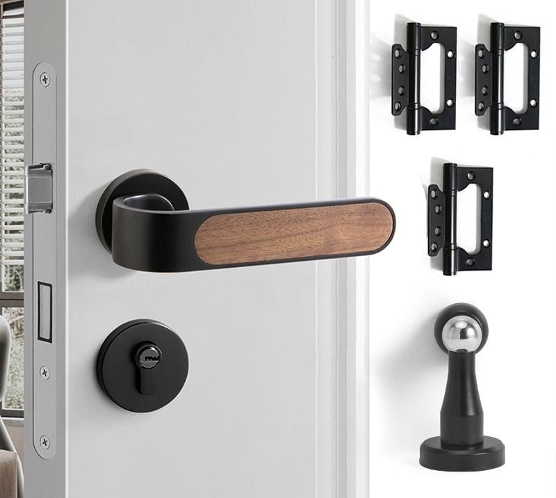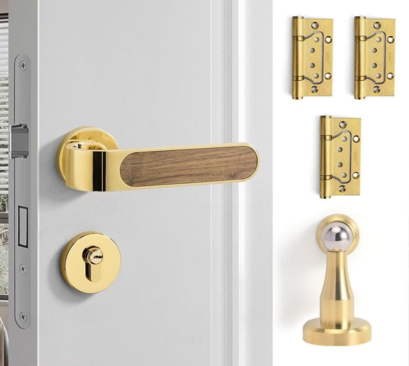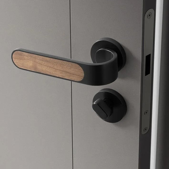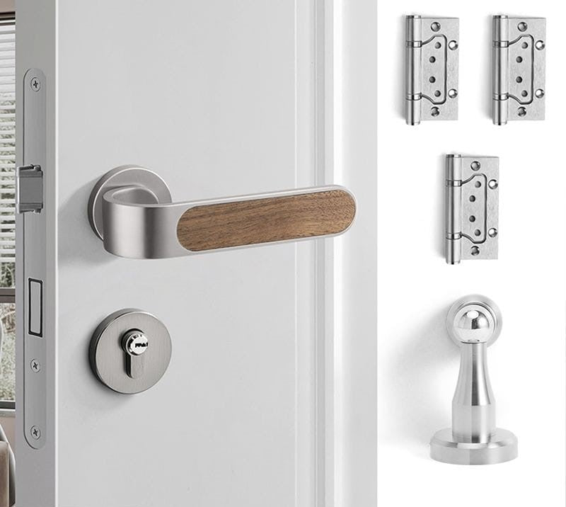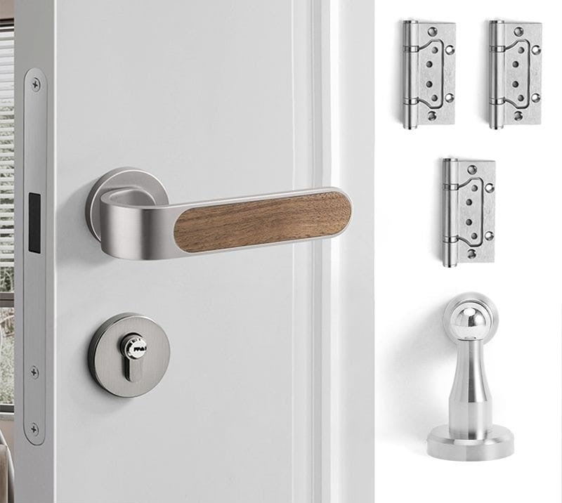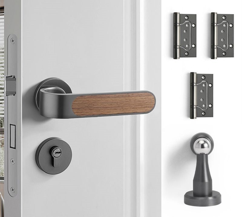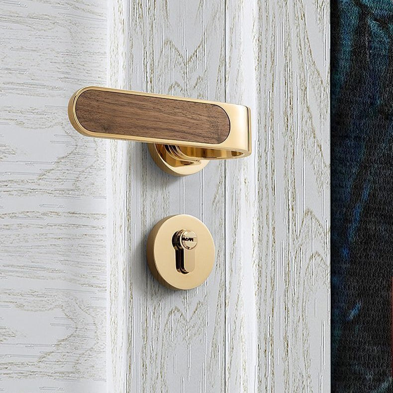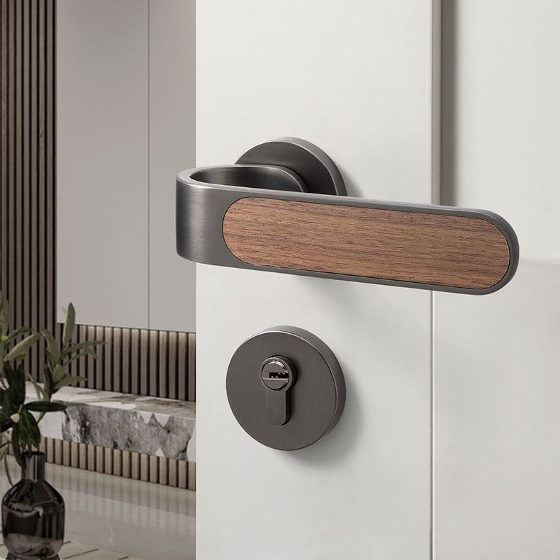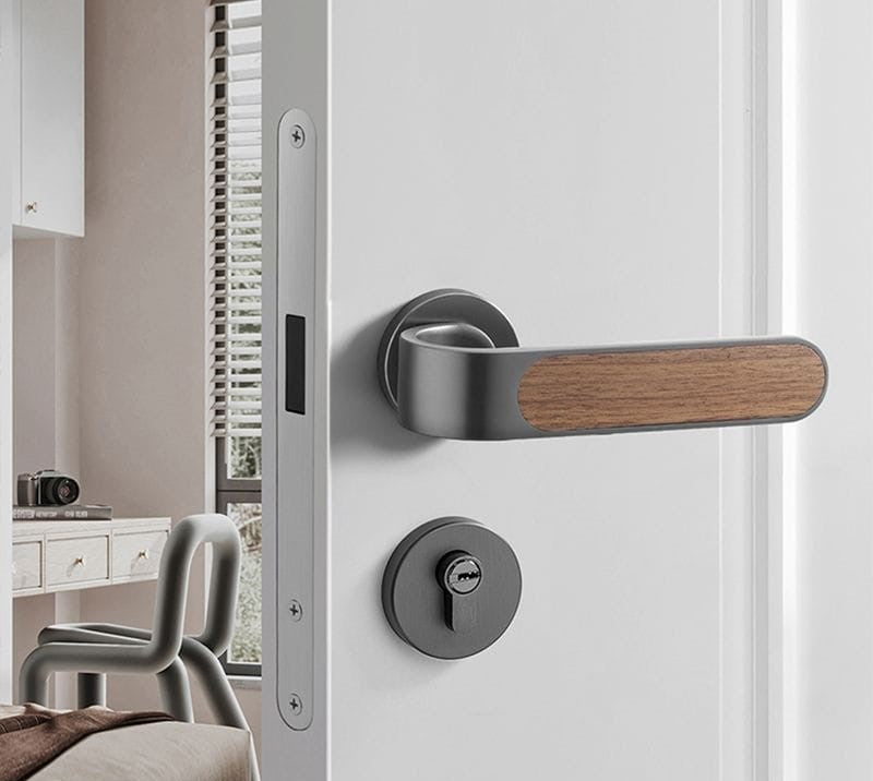 This silent door lock features an elegant wood grain design with smooth operation. The oblique tongue mechanism and copper construction ensure durability and reliable performance. Perfect for bedrooms, it provides quiet, muted locking action for peaceful home living.