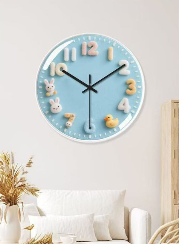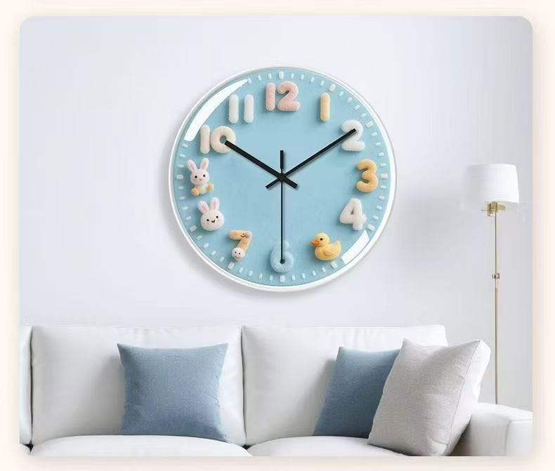 Delightful silent cartoon wall clock designed for children's early education and bedroom décor. Features vibrant, engaging designs that teach time naturally while maintaining peaceful quiet timekeeping with silent quartz movement. Durable ABS case with glass mirror and pointer display. Perfect for study rooms, living rooms, and dining areas.