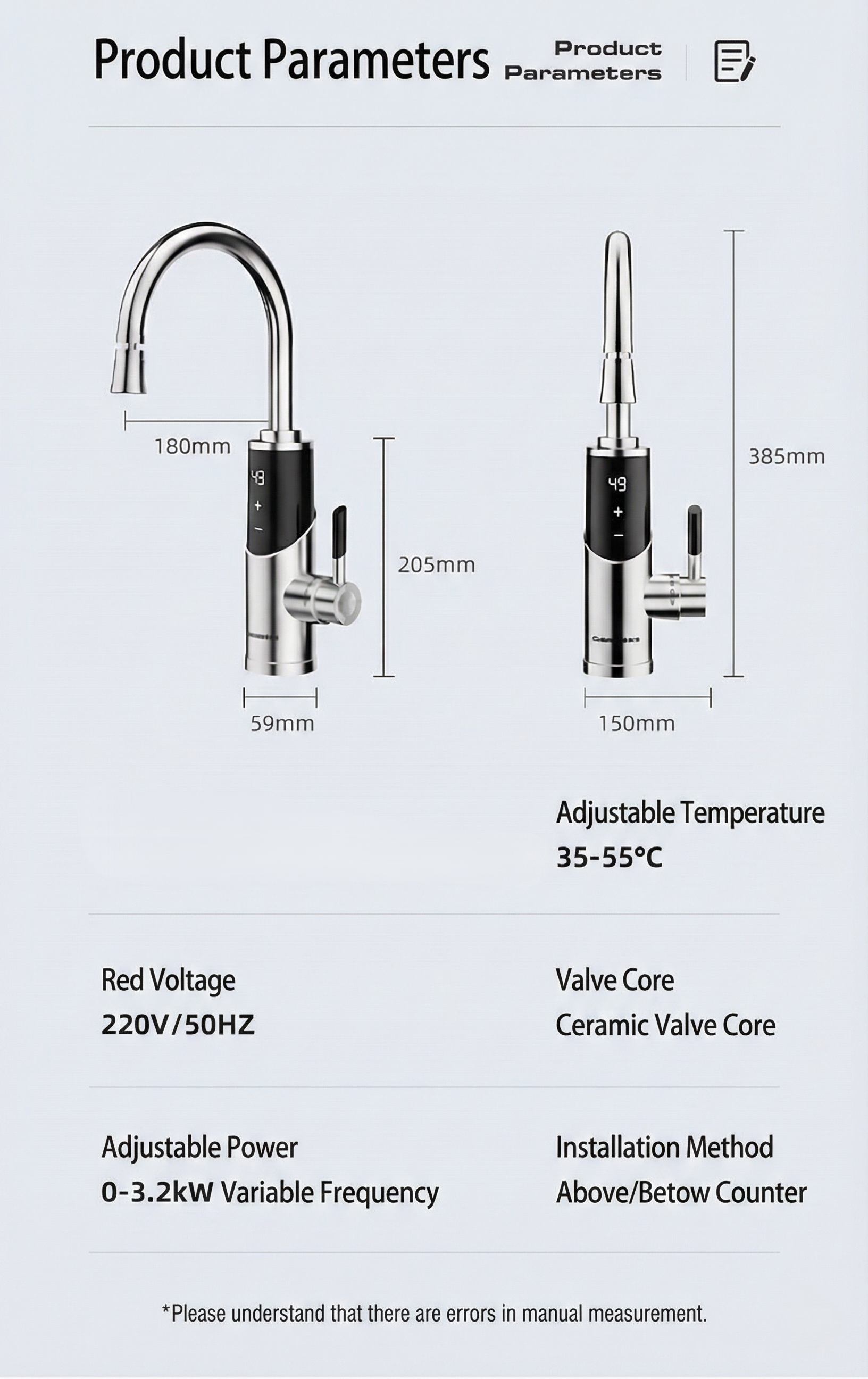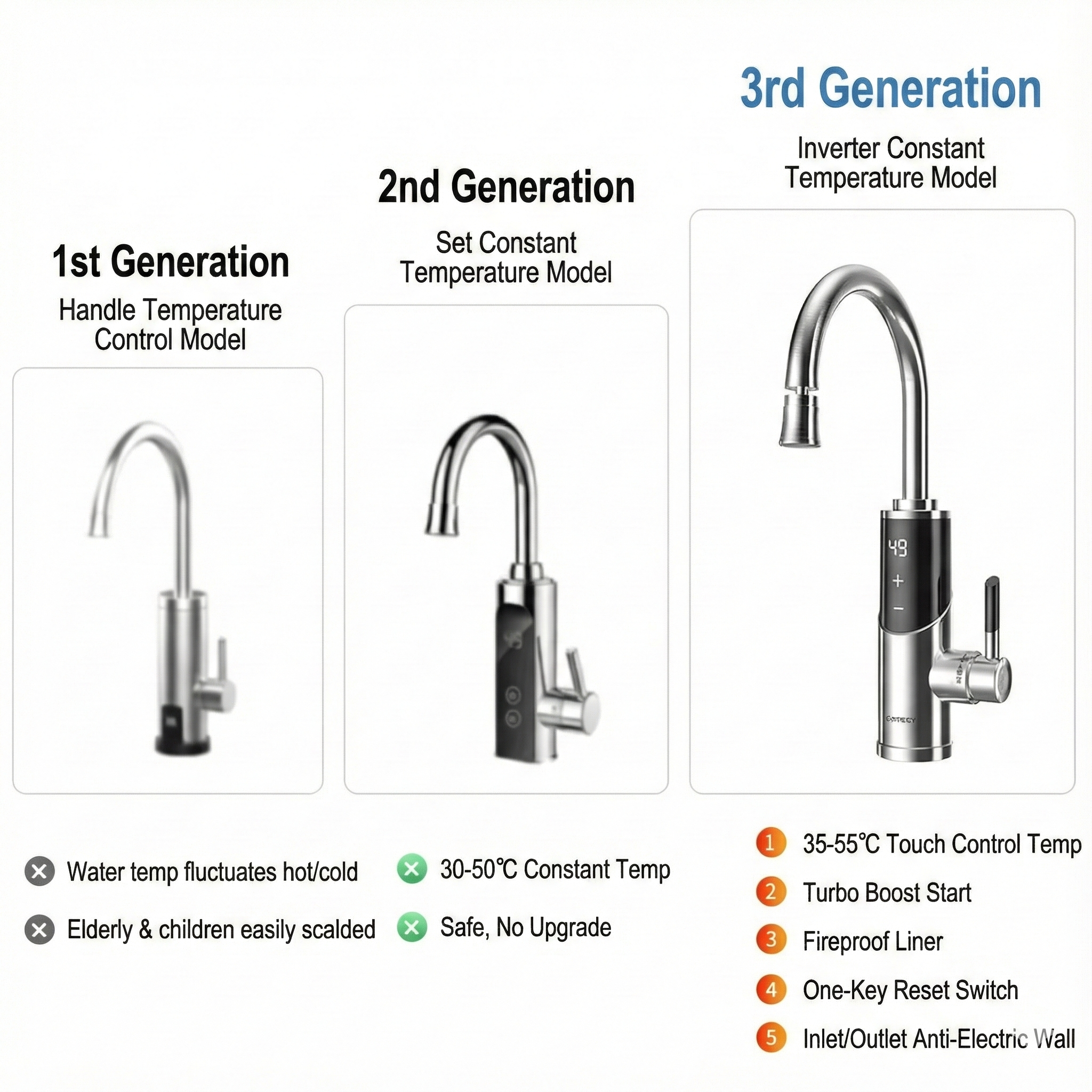 Functions: Temperature display, constant temperature control, water and electricity isolation