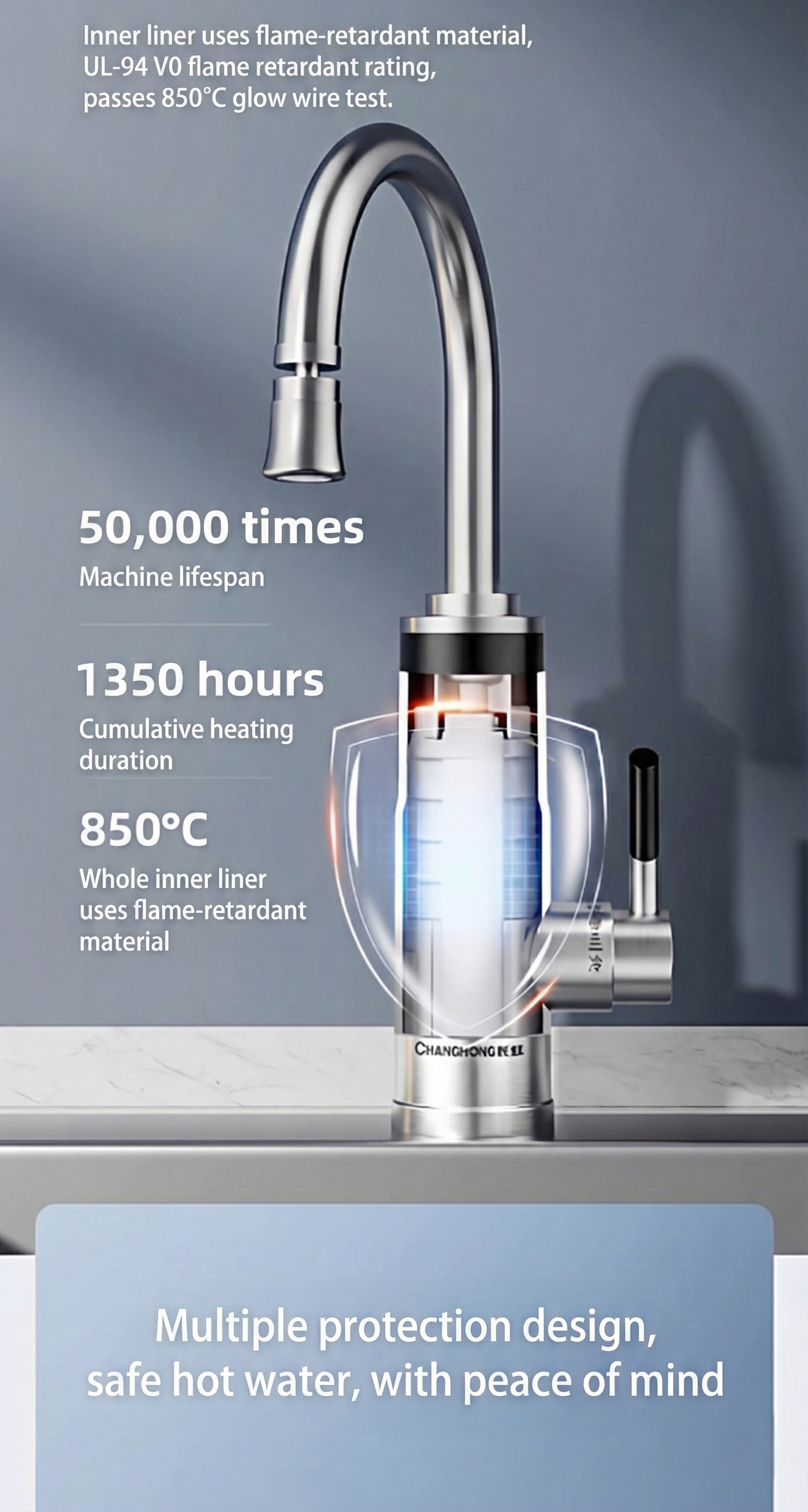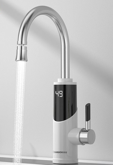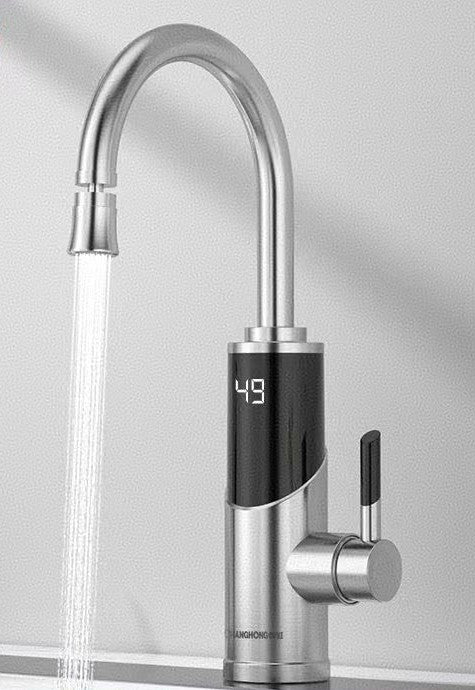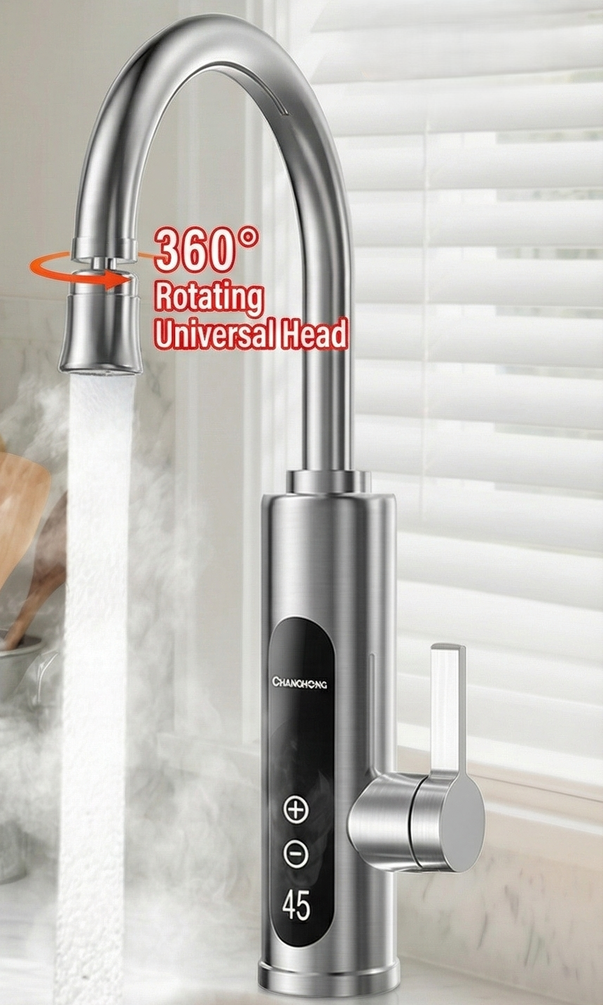 Premium dual-purpose electric water heater with instant hot water delivery and constant temperature control. Features 304 stainless steel construction, ceramic disc valve core, and intelligent temperature display. Perfect for modern kitchens requiring fast, reliable heating with safety isolation protection.
