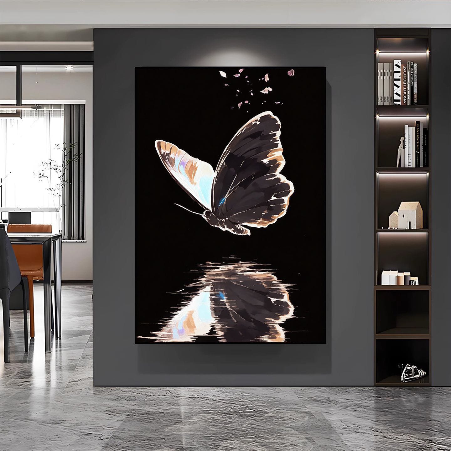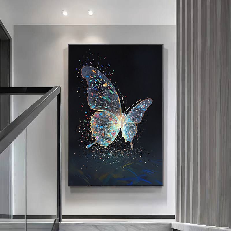 Transform any space with this exquisite butterfly decorative painting. Crafted using crystal porcelain technique on premium rice paper, this high-end artwork works as wall art, entryway sticker, or tabletop décor. The self-adhesive design with aluminum alloy frame adds sophistication to hallways, bedrooms, living rooms, and studies with effortless elegance.
