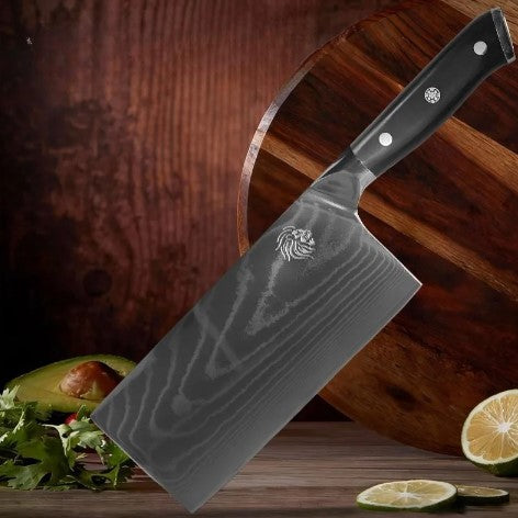 This premium Damascus steel cleaver delivers exceptional cutting performance with its distinctive wave pattern. The ergonomic handle provides comfortable grip for extended use. Professional-grade construction ensures durability and long-lasting sharpness.
