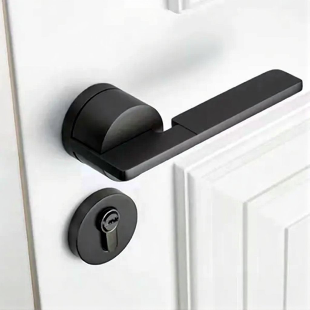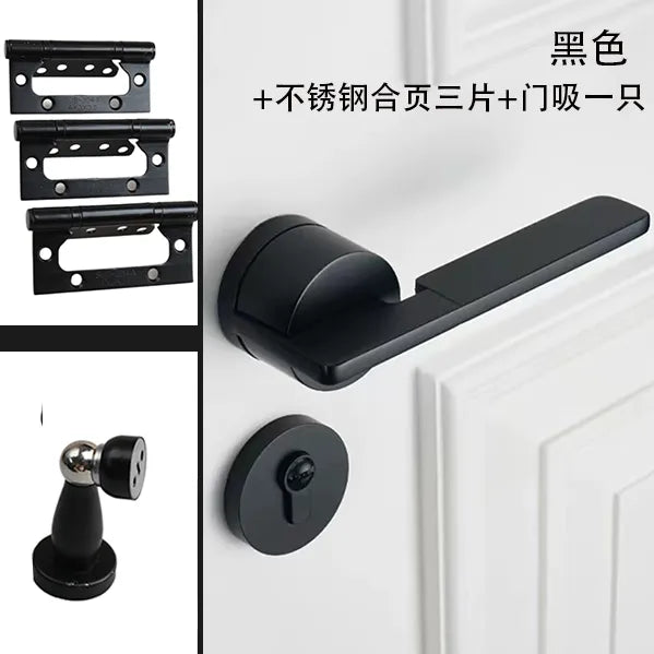Premium silent lock mechanism featuring space aluminum handle and zinc-plated copper cylinder for smooth operation. Designed specifically for bedroom wooden doors with oblique tongue locking and elegant plating finish. Perfect for creating peaceful private spaces with reliable security and contemporary aesthetic.