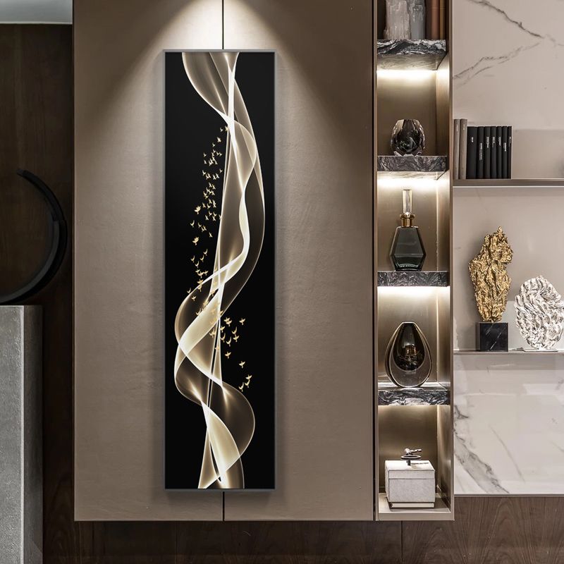 Elevate narrow spaces with this sophisticated vertical strip spray painting. Featuring minimalist modern abstract design on premium porcelain crystal, this high-end artwork transforms entryways, hallways, staircases, and corridors with elegant simplicity. The aluminum alloy frame complements contemporary interiors, creating a striking vertical accent perfect for opposite-door placement or corridor installations.