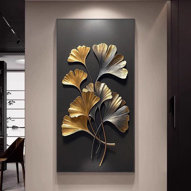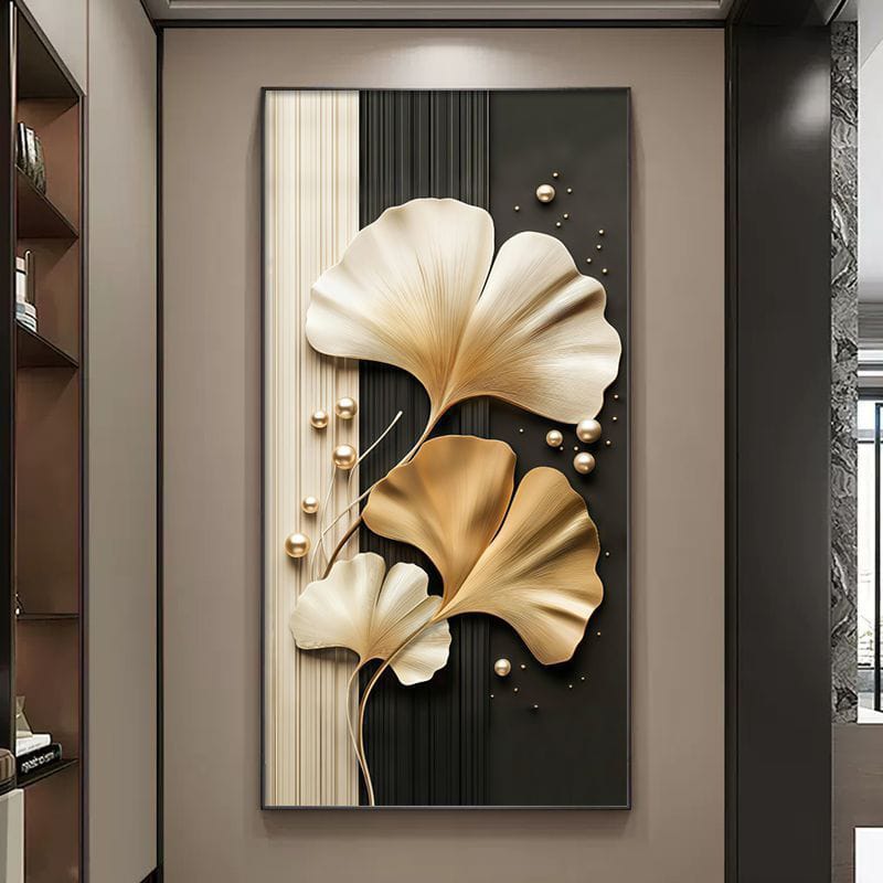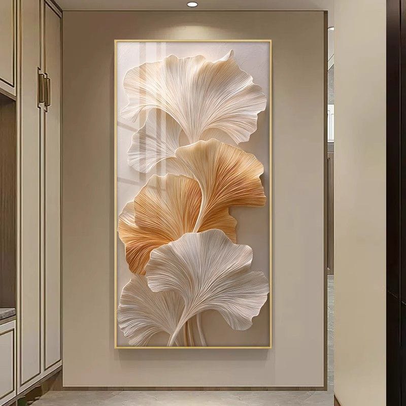 Elevate your space with this exquisite ginkgo leaf decorative painting. Featuring light luxury crystal porcelain process on premium crystal film, this abstract artwork transforms living room walls, hallways, aisles, and study rooms. The aluminum alloy frame adds sophisticated elegance, creating a stunning focal point that celebrates nature-inspired minimalism and refined taste.