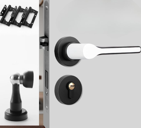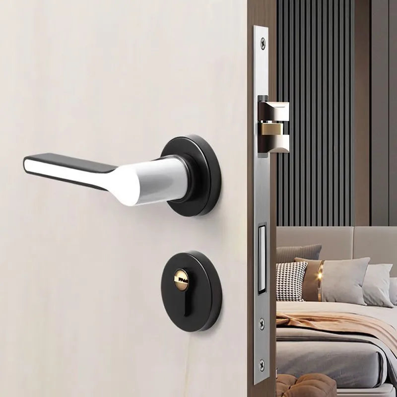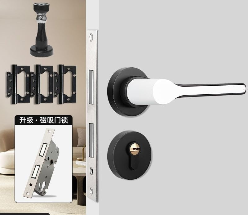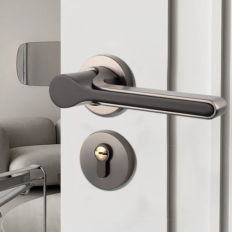 This elegant silent magnetic door lock features advanced technology for peaceful operation in bedrooms and bathrooms. The split golden handle design combines zinc alloy construction with copper core for durability and style. Grade B cylinder level with antioxidant electroplating finish ensures long-lasting performance and sophisticated appearance.