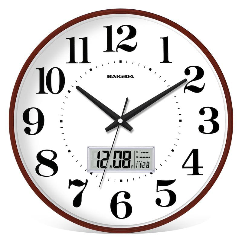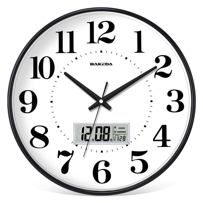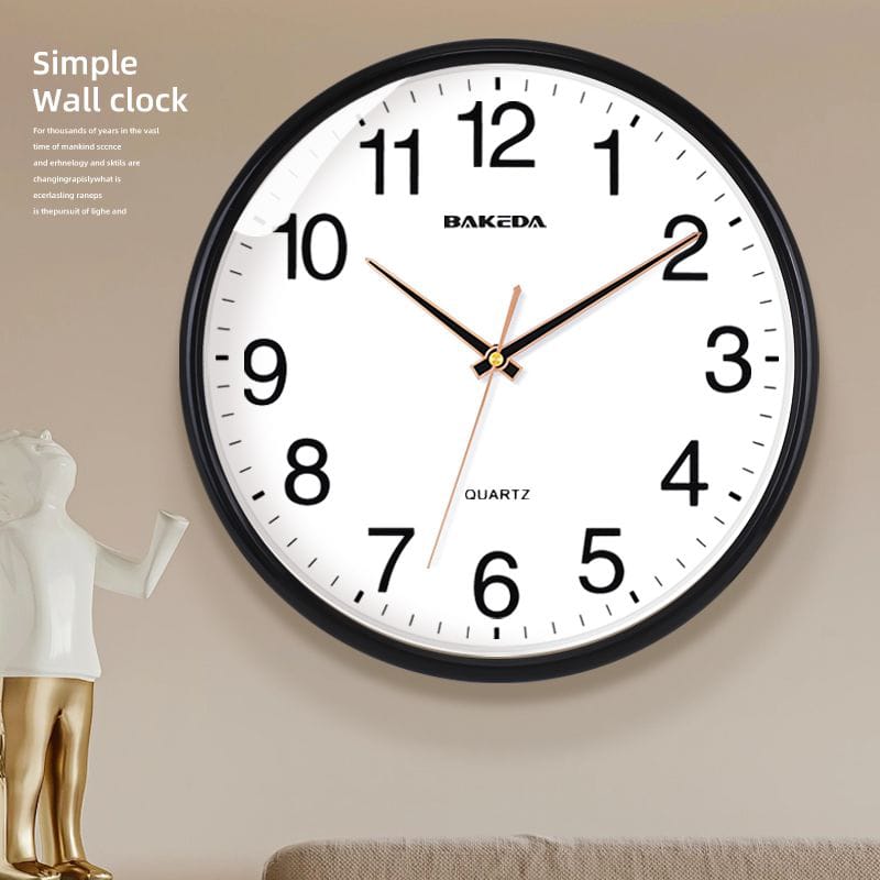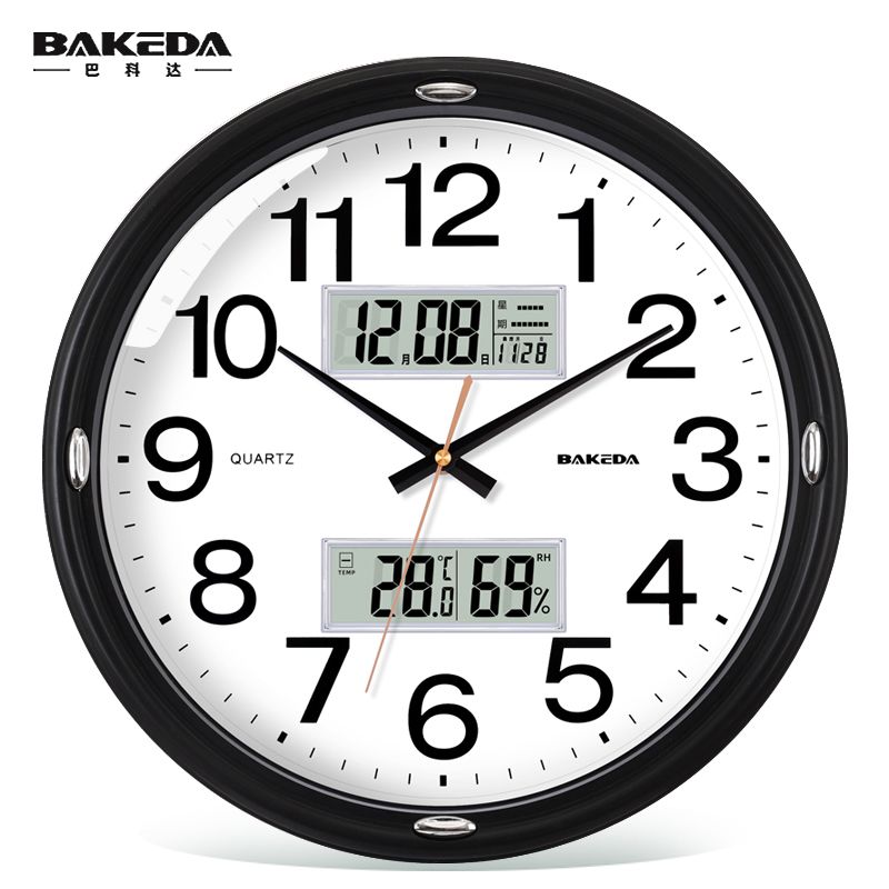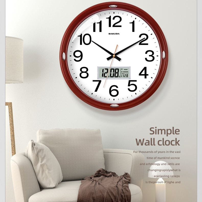Elegant plastic case wall clock with silent quartz movement, displaying time, temperature, and humidity. Perfect for living rooms, dining rooms, and offices. Battery-powered with pointer-type dial and clean modern aesthetic. Ideal for any contemporary space.