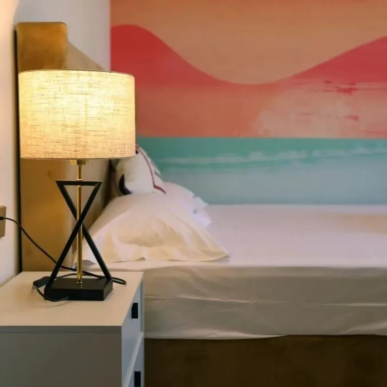 This elegant European-style table lamp features iron base with cloth shade and remote control. Multi-color adjustable LED lighting creates perfect ambiance for bedroom or living spaces. Minimalist design with gold accents adds sophisticated charm to modern home décor.