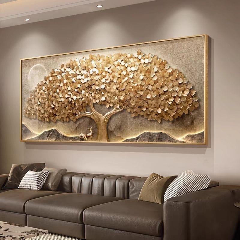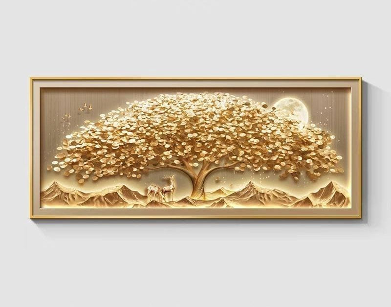 Elevate your space with this exquisite money tree wall hanging. Crafted with crystal porcelain technique on authentic rice paper, this sophisticated decorative painting combines auspicious symbolism with artistic refinement. The sleek aluminum alloy frame enhances any living room, bedroom, or study with timeless elegance and prosperity-inspired design.
