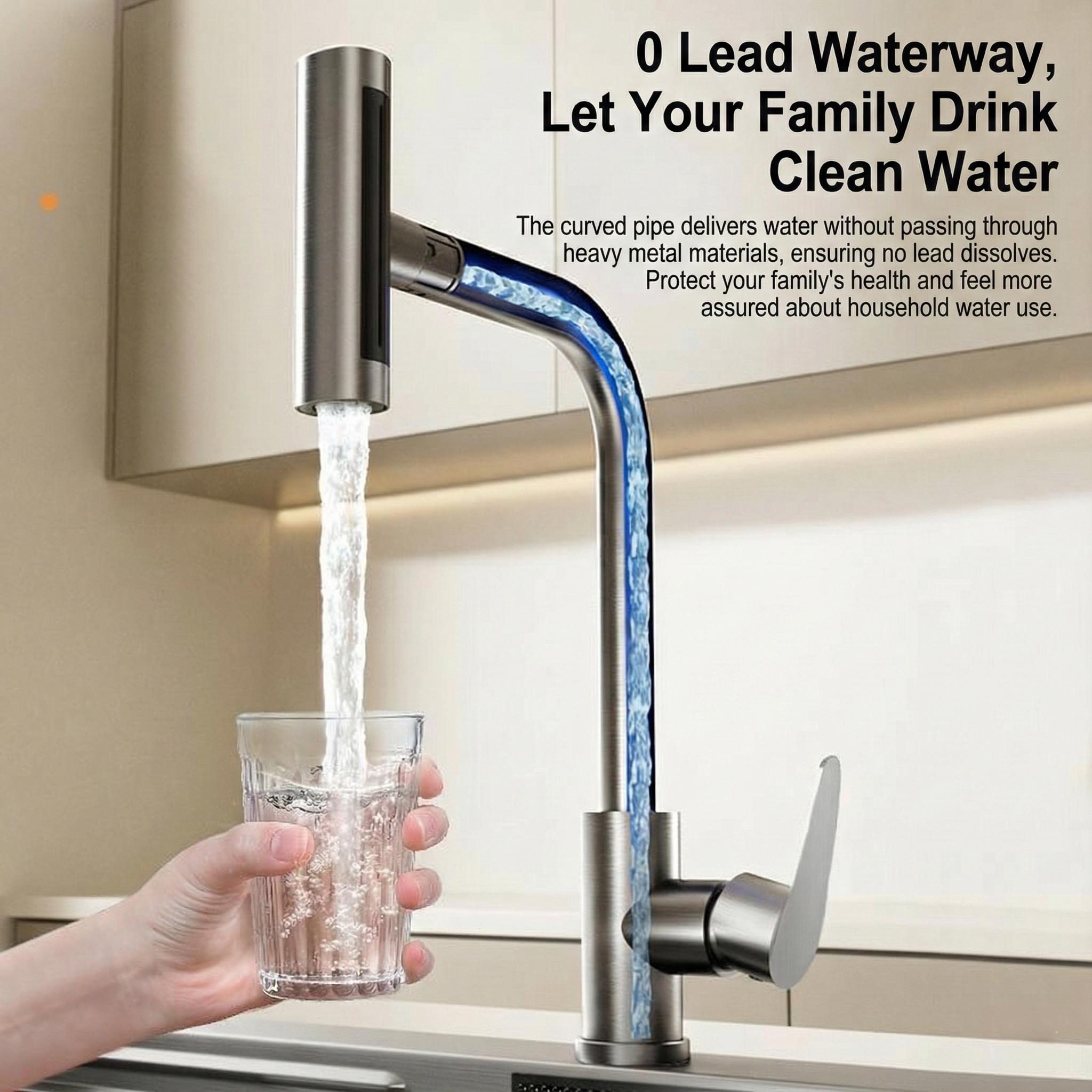 Premium 304 stainless steel Raindry kitchen faucet with raindrop spray effect for sinks, dishwashers, and basins. Features pressurization technology, multiple water outlet modes, and splash-proof design. Single-handle rotatable operation with ceramic disc valve core ensures durability. Level 2 water efficiency rating provides eco-friendly performance for modern kitchens.