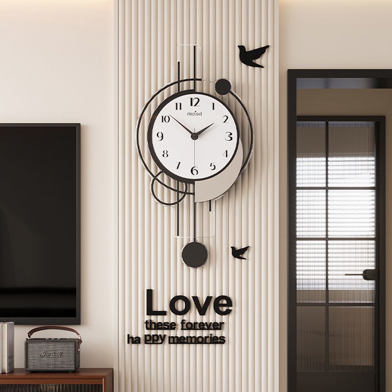 Large modern wall clock featuring organic glass dial with wood elements and silent quartz movement. Non-ticking battery-operated design perfect for living rooms, bedrooms, kitchens, and offices. Irregular grille shape adds contemporary art appeal. Simple elegant styling with pointer display. Ideal home décor combining functionality with aesthetic beauty.
