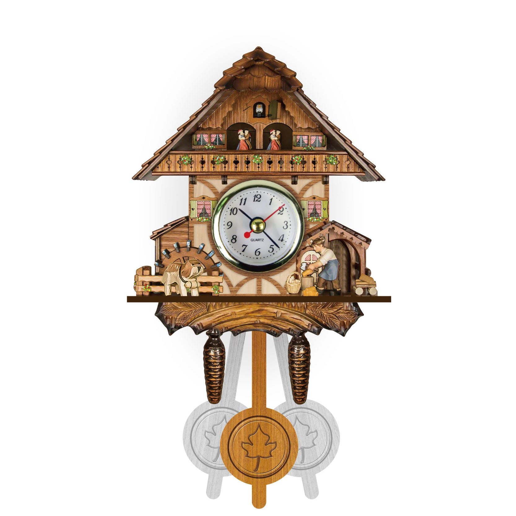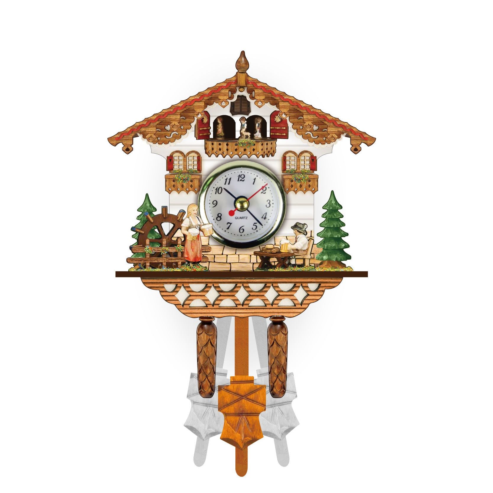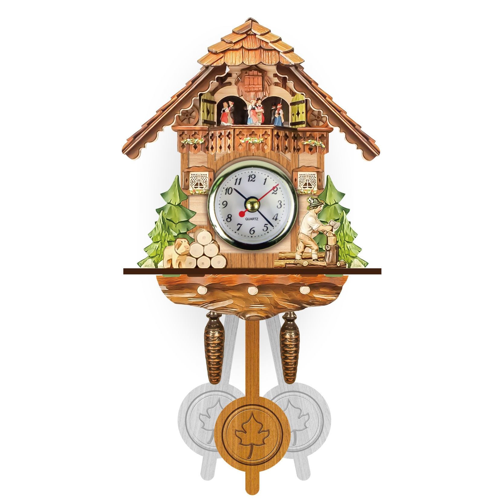 Handcrafted wooden cuckoo clock featuring traditional European design with hourly chime and nighttime silence function. Precision laser-cut MDF construction with mortise-and-tenon joinery. Combines practical timekeeping and alarm features with decorative artistry. Perfect for living rooms, bedrooms, and children's spaces seeking authentic vintage charm.